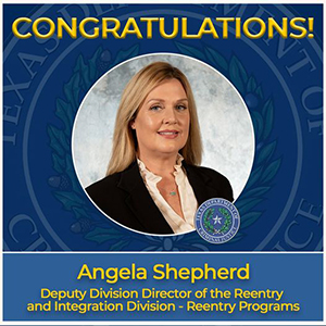 Ms. Shepherd has been a dynamic leader during her time at the Texas Department of Criminal Justice and her experience, knowledge, and dedication will be an ongoing asset to the agency and the Reentry and Integration Division.