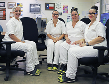 L to R: inmates Jenny Eisenman, Michelle Bearnth, Candra Applegate, and Susana Toledano.